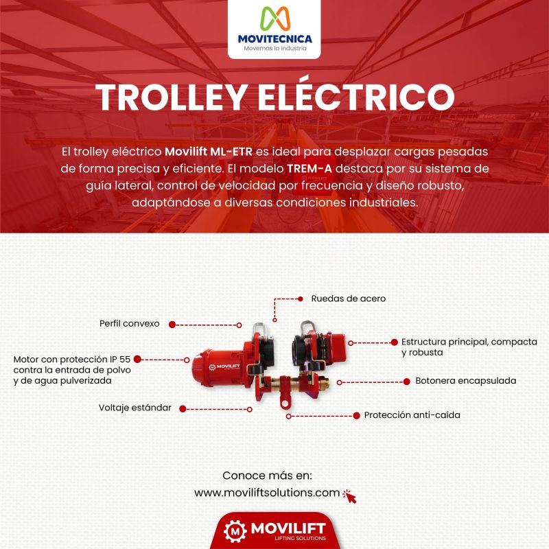 El trolley eléctrico es mucho más que un accesorio: es el componente clave que convierte un sistema de izaje en una solución segura, productiva y moderna. Si tu empresa busca optimizar el movimiento de cargas con la mejor tecnología, Movitecnica Chile es tu aliado estratégico en izaje industrial.